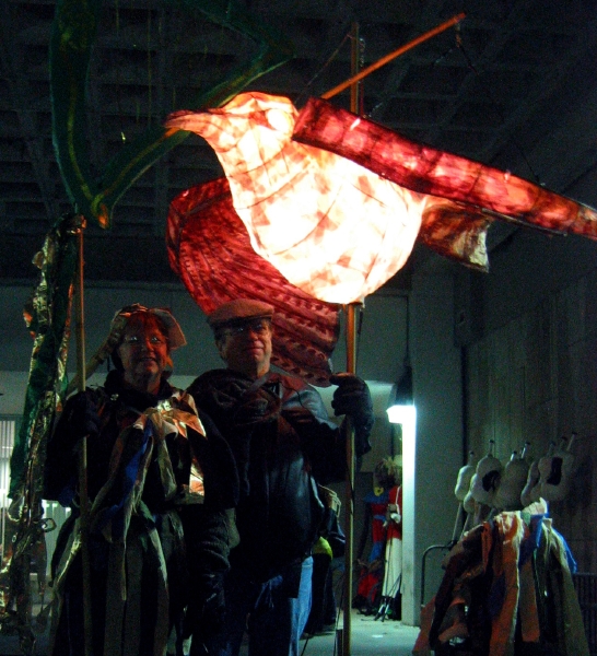 Irish tradition holds that the wren symbolizes the old year, while the robin symbolizes the year to come. To ensure that the passage from old year to new could take place, it was once common practice on St. Stephen's Day (December 26) for a group of local boys to hunt and kill a wren. This band of so-called Wren Boys, ususally costumed and often masked, would then travel from house to house carrying the wren in a small box or casket (other sources say the wren was tied to a pole and decked with ribbons). The regaled each house with musical laments for the unfortunate bird along with pleas to raise money for the funeral. Although the Wren Boys are rarely seen today, and virtually unheard of among many Irish-Americans, they provide a historical thread to Ireland's tumultuous past. Some sources say the wren is villified because it had betrayed Irish soldiers who were staging an attack on the invading Norsemen (who had been responsible for the destructions of the some of the great monastic communities of early Christendom, such as Abbey at Kells). Pecking at some bread crumbs left upon a drum, the wren betrayed the hiding place of the Irish and led to their defeat. Other myths hold that the wren betrayed St. Stephen himself with its chirping, leading to the first martyrdom of a Christian saint. Although the custom of sacrificing a wren is most commonly associated with Ireland, aome form of the tradition actually exists throughout Celtic world, with similar rites found in the Isle of Man, Wales, and France. We paid homage to the Wren Boys through the creation of a giant animated wren lantern, beset on all sides by a band of masked Wren Boys. As they give chase to the old year and make way for the new on First Night, their song will be carried aloft on giant harps, the national symbol of Ireland (and an instrument once banned by British invaders of a later era. For further info on the Wren Boys: www.irishfestivals.net/saintstephensday.htm www.isle-of-man.com/manxnotebook/fulltext/scrap2/ch09_1.htm