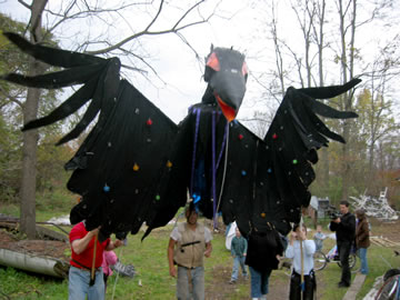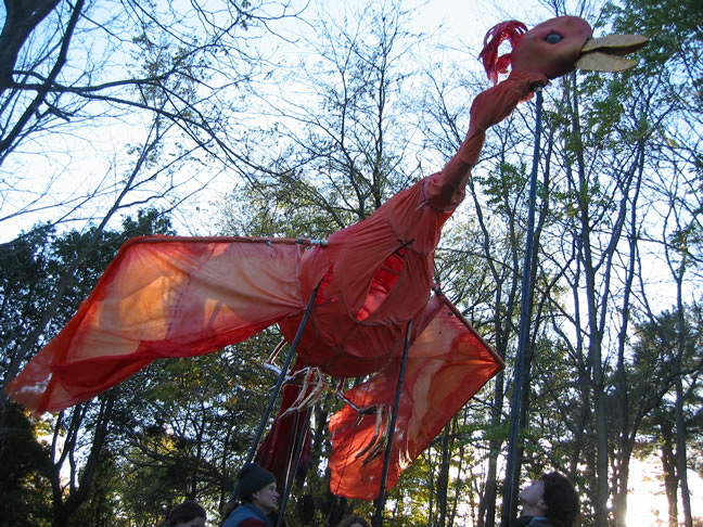 In 1998 Alex Kahn and Sophia Michahelles began collaborating on pageant puppetry commissions for New York's Village Halloween Parade. Gathering around them an ensemble of artists, stage technicians, performers, and other volunteers, they called themselves Superior Concept Monsters, and inherited a pageant arts tradition that went back to the origins of the renowned event, when Ralph Lee first brought out his giant puppets on Halloween Night in 1973. With the support of VHP artistic director, Jeanne Fleming, SCM has continued to expand the scope of their work, while maintaining strong community roots through local Puppetraisings, open workdays when hundreds of volunteers come together to work, eat, and collaborate on a single artistic goal. In 2002, SCM began transplanting the Puppetraising process to other locales and events. Starting with a small nearly-abondoned village in rural Italy, they used local folklore and ritual traditions as a starting point to create pageants that brought together local residents with international participants. A decade later, Morinesio Midsummer Pageant is now a much anticipated annual ritual, a self-supporting event that has brought national attention to the once-marginalized region's Occitan culture. Following up on the success of the Italy project, SCM continued to seed new site-specific pageant traditions in locales ranging Texas to Trinidad, in the process earning a Fulbright Fellowship to Trinidad and a Mid-Atlantic Arts Foundation Artists and Communities Grant for their work for First Night in Binghamton, NY. Eventually, Alex and Sophia decided to form a non-profit organization to further their mission to use processions as a means for communities to reflect upon, preserve, and interpret the defining aspects of locality. In 2005, Processional Arts Workshop, Inc. was born, with a broad set of goals that include creating a permanent artist residency for teaching and practicing the arts of procession, developing published resources for creating pageants, and continuing to expand and develop their own work in pageant puppetry. |