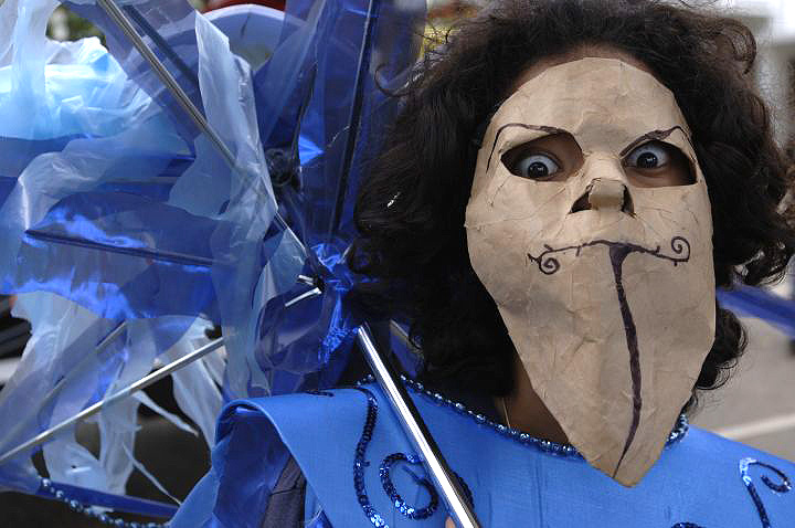 Isava, a student of Festival Arts at University of the West Indies, plays a Mas within a Mas, with her own riff on the Siren theme.