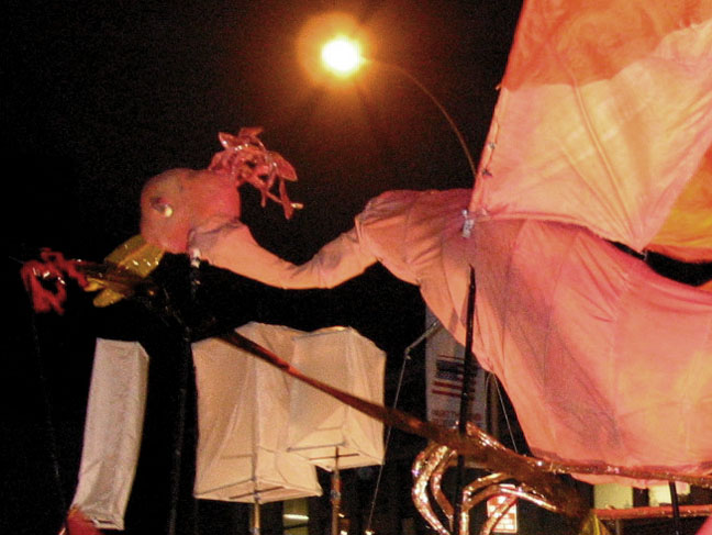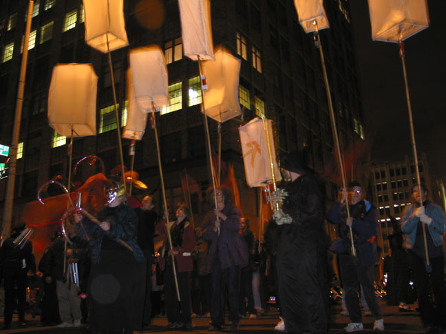 Performance at Village Halloween Parade, NYC. Six weeks after the events of September 11, 2001.