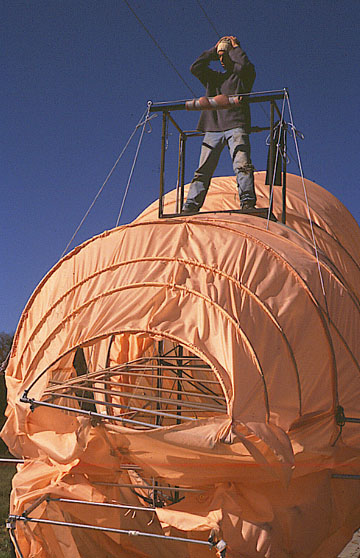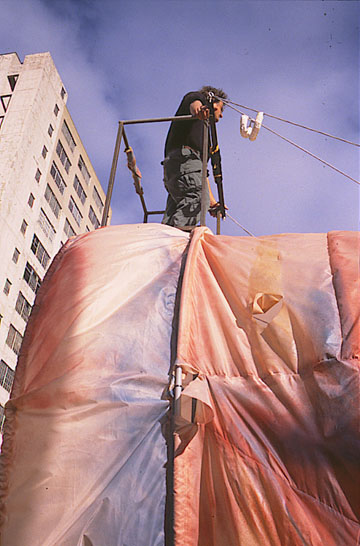 4PM: Tech Marshal George Harrar takes a moment to survey the urban landscape, from atop the worm.