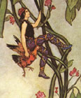 On Halloween Night, hundreds joined our retinue of dancing Jacks, as nine 12-foot tall Jacks-of-the-lantern led the Parade, surrounding a Cauldron of fire as it rolled up Sixth Avenue. As their heads bowed low over the Cauldron, silken flames erupted from, illuminating their heads and sparking a frenzied jig. As they spiralled outeward toward the crowd, they reenacted Halloween's primal ritual, carrying their embers outward like ripples, from the communal fire to an outer circle of lantern-bearers, and on into the crowd. |
