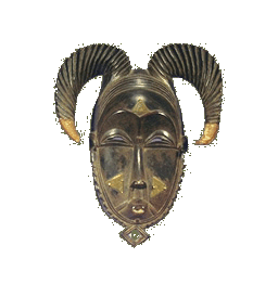 Ceremonies honoring the Ram, or Ebune, are held to recognize the return of the rains after dry, winter season. Ram masks often feature a white line running down the central axis of the head. The line divides life from death, light from darkness, and reinforces the notion the Ram as the sign of rebirth or return from death. The Nigerian Ibo figure of Ikanga is associated with Ebune, and symbolizes resilience and strength. Ikangas have three distinct phases of transformation, which mirror a personal transitions that occur in life. The "young" Ikangas are largely abrstract forms, while the elder Ikangas are figurative, "fully formed" as it were. Rams' horns are the only constant throughout the three phases, providing the strength and motivation necessary to make the difficult journey from one phase of life to the next. The qualities attributed to the Ikanga translate to other areas of African ritual art, and horns of the Ram appear in many other masks. Often the tips of the horns are given a color. Two common colors are red and yellow: red, as deptiction of blood, embodies assertive, decisive action, whereas yellow is associated with change that comes through medecine or healing.